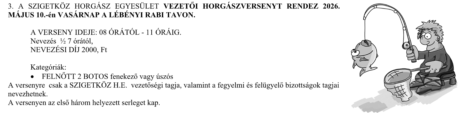 Vezetői horgászverseny - Öttevény, 2026. május 10.